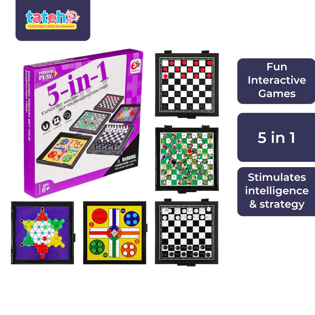 5 Permainan dalam 1 – termasuk Catur, Dam, Ludo, Ular dan Tangga, serta Chinese Checkers.