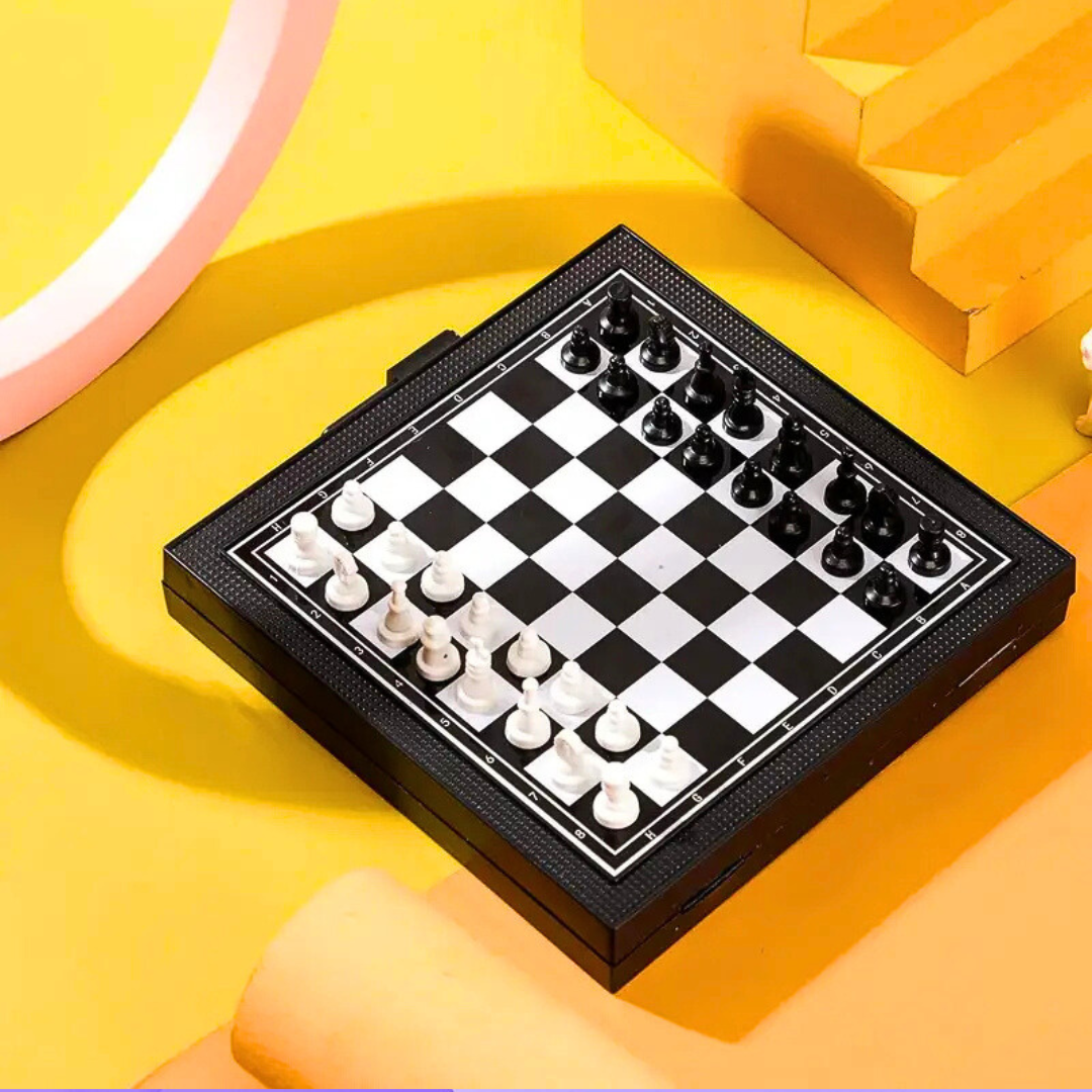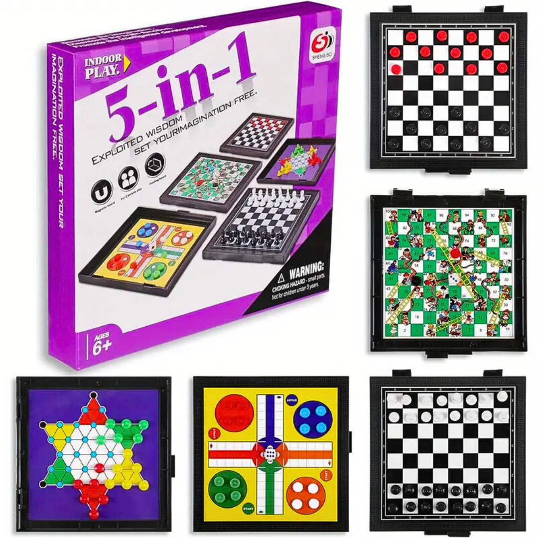 Mini 5-in-1 Magnetic Board Game – Catur, Dam & Snake Ladder Travel Set