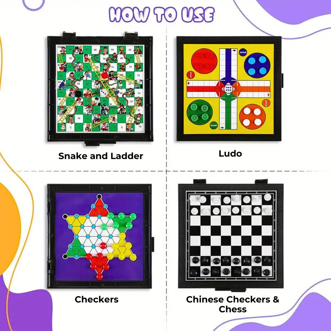 🧲 5 Permainan dalam 1 — Catur, Ludo, Ular & Tangga, Dam & Chinese Checkers! Seronok, mudah dibawa, sesuai untuk seisi keluarga.
